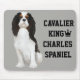 Niedliches Mousepad, das eine Illustration eines unbekümmerten Königcharles Spaniel kennzeichnet. Kundengerechte Hintergrundfarbe und -texte. Perfektes Geschenk für den Hundliebhaber oder Kavalier-Königcharles Spaniel-Eigentümer.