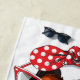 Dieses Ausrüstungsbeschreibungen, die ein unbekümmerter Königcharles Spanielhund in einer gestreiften Wolljacke ankleidete, rote Sonnenbrille und mit einem Tupfenstirnband.