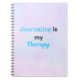 Ein motivierend Design mit dem Satz "Journaling is my Therapy". Der Text ist in einer Mischung aus blauen und schwarzen Schriftart gestaltet, wobei "Journaling" und "Therapy" in einem beruhigenden Blau hervorgehoben werden. Ideal für Zeitschriftenliebhaber, Schriftsteller und alle, die Frieden im Schreiben finden.