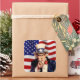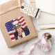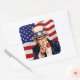 Quadratischer Aufkleber mit einem Vintagen Bild von Uncle Sam aus den 40er Jahren auf der amerikanischen Flagge. Siehe dazu passender Vinyl-Aufkleber, Beutel mit Vorzug, Etikett und Etikett. Sehen Sie sich die gesamte Patriotic 40s-Aufklebersammlung im INVITES an. | Aufkleber und Etiketten.