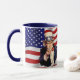 Tasse mit Vintagen Bildern von Uncle Sam aus den 40er Jahren auf einem Bild der amerikanischen Flagge. Siehe dazu passende Papiertafel, Schiebeglas und Untersetzer. Sehen Sie sich die gesamte Patriotic 40s-Tasse-Sammlung im NAHRUNGSMITTEL/BEV an. | Abschnitt Geschirr.