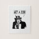 Onkel Sam sagt dir, du sollst einen Job bekommen. Das sonnige Bild in Schwarz und Weiß mit Sprachblase.