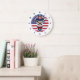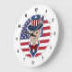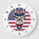 Uhr mit einer Illustration von Uncle Sam mit der amerikanischen Flagge als Hintergrund, 4. Juli patriotisches Design von Maxi Harmony / Radka Kavalcova