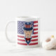 Tasse mit einer Illustration von Uncle Sam mit der amerikanischen Flagge als Hintergrund, 4. Juli patriotisches Design von Maxi Harmony / Radka Kavalcova