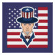 Poster mit einer Illustration von Uncle Sam mit der amerikanischen Flagge als Hintergrund, 4. Juli patriotisches Design von Maxi Harmony / Radka Kavalcova; blaue Version