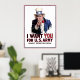 Dieses Vintage Kriegsposter zeigt Onkel Sam in seinem bekanntesten Bild. Er sagt: "Ich Woll dir". Feiern Sie die amerikanische Geschichte mit diesem digital restaurierten Vintagen Kriegsposter aus dem The War Is Hell Store. Woll mehr Militär- und Geschichtsprodukte? Karo