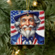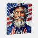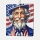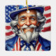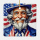 Smiling Onkel Sam USA American Icon mit einem amerikanischen Anzug und einer schwindenden amerikanischen Flagge im Hintergrund
