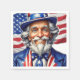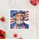 Smiling Onkel Sam USA American Icon mit einem amerikanischen Anzug und einer schwindenden amerikanischen Flagge im Hintergrund