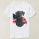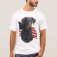 Eine natürliche ohrige Dobermannpinscher-Kopfstudie vor einer wellenartig bewegenden amerikanischen Flagge.