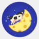 Und die Kuh sprang über den Käsemond Runder Aufkleber
