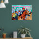 Farbenfrohe Aquarellmalerei von Pferderennen.
