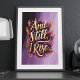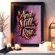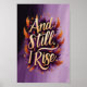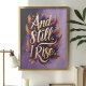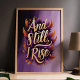 Mit dieser atemberaubenden "And Still, I Rise"-Wandkunst, die mit einer kühnen Goldtypografie umgeben von lebhaften Orangen- und lila Federn ausgestattet ist, ist dieses Design eine Feier der Widerstandsfähigkeit und Ermächtigung. Dieses Stück ist perfekt, um Ihre Zuhause, Ihr Büro oder als sinnvolle Geschenkidee zu inspirieren. Es strahlt mit seinen Farben und der aufregenden Botschaft das Vertrauen und die Entschlossenheit aus.