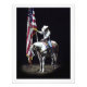 Ein wunderschönes Foto des Cowgirl auf einem Palomino & weißen Paint Horse, das die amerikanische Flagge während der National Anthem auf der Snake River Stampede von 2014 hält.