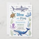 Dive into an ocean of fun and join us to celebrate Benjamin's 5TH birthday! This charming invitation is perfect for a little ocean explorer, featuring a beautiful collection of watercolor sea animals. Your guests will be greeted by a friendly shark, a gentle whale, a swimming sea turtle, a curious octopus, and a graceful stingray. The artistic, underwater scene creates a magical and adventurous atmosphere for a fintastic celebration. All the party details are fully customizable.