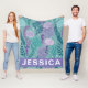 The wide, personalized band at the bottom allows you to easily add a name, initials, or family nickname (e.g., "Jessica"). This blanket makes a perfect customized gift for anyone who loves the ocean, coastal living, or a soft, aquatic fantasy aesthetic.