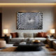 Dieses abstrakte Kunstwerk zieht den Betrachter in einen hypnotischen Tunnel aus verwobenen geometrischen Formen, wobei Silber- und Schwarztöne ein Gefühl endloser Tiefe und Bewegung erzeugen. Die sich wiederholenden Linien deuten auf einen unendlichen Fluss hin, fordern die Wahrnehmung heraus und laden zu einer immersiven visuellen Reise ein.