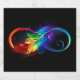 Künstlich gezeichnet Unendlichkeitssymbol mit schöner Regenbogenfeder auf weißem Hintergrund. Tattoo-Stil.