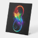 Unendliches Symbol mit Regenbogenfederhalter Sockelschild