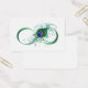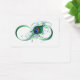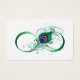 Das Symbol der Unendlichkeit mit einer hellen, grünen, künstlerischen Pfauenfeder auf weißem Hintergrund. Tattoo-Stil.