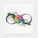 Unendlichkeitssymbol mit Regenbogen-Rose auf weißem Hintergrund.