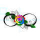 Unendlichkeitssymbol mit Regenbogen-Rose auf weißem Hintergrund.