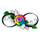 Unendlichkeitssymbol mit Regenbogen-Rose auf weißem Hintergrund.