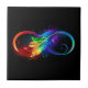 Unendlichkeitssymbol mit Regenbogen-Feder Fliese