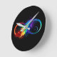 Unendlichkeitssymbol mit Regenbogen-Feder Runde Wanduhr