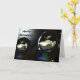 Eine Geburtstagskarte für Sci-Fi-Fans. Man weiß nie, wer auftaucht, wenn man auf einem weit entfernten Planeten spazieren geht. Der Fokus auf diesem Bild, ein Raumschiff der Alien, liegt nicht im Blickfeld, sondern nur in den Augen der Astronauten.
