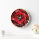 Eine elegante Uhr mit roten Blumen mit einem Strauß aus stark roten Blume, perfekt, um Ihrer Wohngestaltung diese unerwartete rote Touch hinzuzufügen. Der Text ist vollständig editierbar, was ihn zu einem großartigen Geschenk für eine neue Zuhause macht.