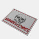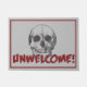Lassen Sie sich von ungewollten Gästen verwöhnen oder machen Sie sich dieses Halloween ein wenig Spaß mit dieser spöttischen Türmatte. Ein Vintager schwarzer Schädel mit den Worten "Unwelcome" in blutrot-ghoulischer Typografie auf hellgrauem Hintergrund, umgeben von einem dunkelroten Rand.