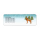 Desteis originelle Cartoon-Illustration eines niedlichen ungarischen Vizsla Rasse Hundes. Der Hund ist in einer Winterlandschaft mit drei grünen Tannenbäumen und fallendem Schnee untergebracht. Der Hintergrund ist ein blaues bis weißes Gefälle, das das Design des kalten Wintertages verleiht. Neben dem Hund gibt es einen personalisierbaren Textbereich.