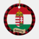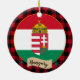 Ornamente: Rustikales Ungarn Zierdekoration mit ungarischer Fahne umgeben von roten und schwarzen Büffel karierten Mustern - Liebe mein Land, Weihnachtsdekoration, nationale Patrioten / Sportfans.
