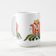 Ungarische Vintage Tulpenschablone schmückt eine Jumbo-Tasse in den Magyarfarben Orange und Grün.