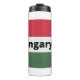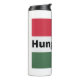 Ungarischer Fußballspieler, der den Punkt als Ball mit ungarischer Flagge im Hintergrund verwendet