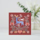 Ungarisches Folk Art Motiv des Hirsches auf rotem Hintergrund. quadratische flache Karte.