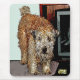 Dieses Bild zeigt meinen eigenen weich beschichteten Weizenterfahrer Waverly ("Waves"), der gerade ein Shampoo hatte und kurz davor steht, gepflegt zu werden. Während ich meinen Kamm bekomme, ist Waverly am Rande des Tischs und überlege nach unten zu springen und wegzulaufen. ;-) Dieser normalerweise fröhliche Freiraum würde im Regen viel eher vereiteln und in Pfützen springen, als sich herauskämmen zu lassen! Original Soft Coated Wheaten Terrier digitales Portrait "Unhappy Camper" M.Light