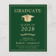 Elegante und preisgünstige Ankündigung und Party Einladung des grünen Uni-Abschlusses mit goldener Graduiertenkappe und moderner, leichter Goldtypografie für den Namen, das Klassenjahr, die Uni oder die Hochschule, den Abschluss und die Hauptfach- oder Ehrengänge.