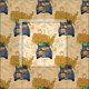 Ein beigefarbener Stoff zeigt die Aquarellbilder eines Autos mit farbenfrohen Koffern und Kisten, die den Charme einer Uni-Reise wecken.