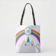 Ein lustiges, Cartoon Katzeneinhorn mit farbenprächtigen Regenbogen und individuellem Monogramm Initial. Niedliche, mit Monogramm Totentasche.