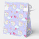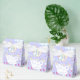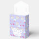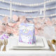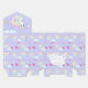 Das Design ist mit einem Lavendelhintergrund mit weißen Einhornköpfen in Pastellrosa, Blau und Gelb. Überall gibt es flauschige blau umrissene Wolken, rosa Herzen und gelbe Sterne. Die Elemente sind in einem nahtlosen, skurrilen Muster angeordnet. Der Gesamtstil ist verträumt und fantasievoll inspiriert.