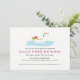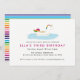 Diese niedliche Party Einladung verfügt über ein im Wasser schwimmendes Einhorn - ideal für ein Party mit Kinderbecken und Regenbogen!