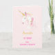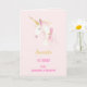 Eine niedliche Einhorngrüßkarte. Weich, rot, rosa. Personalisieren und fügen Sie einen Namen, Alter und von wem es stammt. Raum, in dem Sie von Hand schreiben können. Fügen Sie 2 Fotos hinzu.