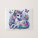 Dieses Spielpuzzle wird mit einem Kunstdruck eines schönen Einhorns gezeigt. Passen Sie dieses Objekt an oder kaufen Sie, wie es ist. Lizenziertes Bild
