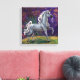 Unicorn Glade I Glauve Art von Traci Van Wagoner Druck, Plakate, Accessoires, und Geschenke zeigen unser Original-Gemälde eines Einhorns, stehend in einer magischen sonnigen Glade mit den Worten am unteren Ende, Unicorn Glade, in einem schönen gradatierten lila Drehbuch. Unsere hübsche Fantasiekunst macht Geschenke für alle, die Einhörner, Pferde und alles Zauberhafte Lieben.