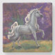 Unicorn Glade I Glauve Art von Traci Van Wagoner Druck, Plakate, Accessoires, und Geschenke zeigen unser Original-Gemälde eines Einhorns, stehend in einer magischen sonnigen Glade mit den Worten am unteren Ende, Unicorn Glade, in einem schönen gradatierten lila Drehbuch. Unsere hübsche Fantasiekunst macht Geschenke für alle, die Einhörner, Pferde und alles Zauberhafte Lieben.