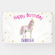 Celebrate a magical birthday with this adorable unicorn banner! Featuring a beautifully illustrated watercolor unicorn with a flowing pastel rainbow mane and sparkling gold horn, this design creates the perfect whimsical look for a girls unicorn birthday party.
