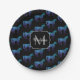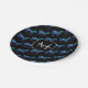 Unicorn Glitzern Aqua-blaues Omermuster Monogram Pappteller