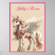 Hübsche weiße Unicorn hat ein glänzendes goldenes Horn und prächtige weiße Flügel, rosa Rosen in ihrer Mane und um ihren Hals und rosa Satinband um ihren Bauch. Großartiges Poster für Ihr kleines Mädchenzimmer. Die Hintergrundfarbe kann geändert werden. Personalisieren Sie diese, indem Sie Ihren Namen hinzufügen.