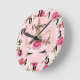 Unicorn Gold Pink Floral Roses Trendy Bedroom Runde Wanduhr